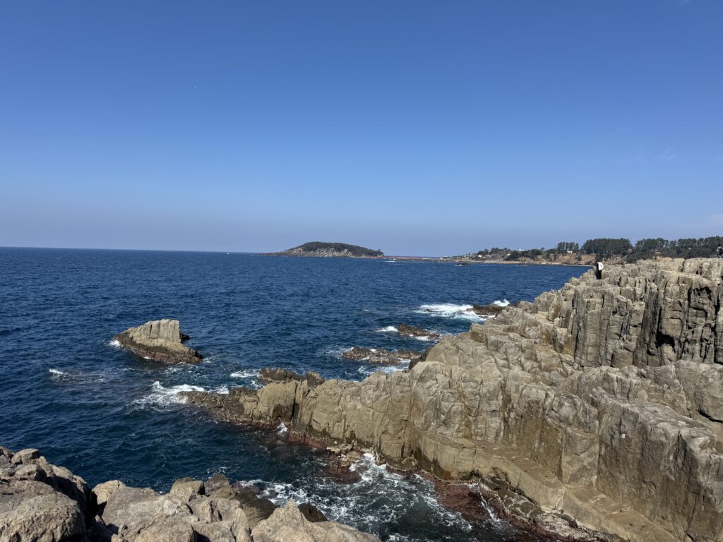 実際に立つと、波の音がずっと低く響いていて、景色というより体験。崖の近くに行くと高さでゾワッとして、無意識に足が慎重になるのが面白い。