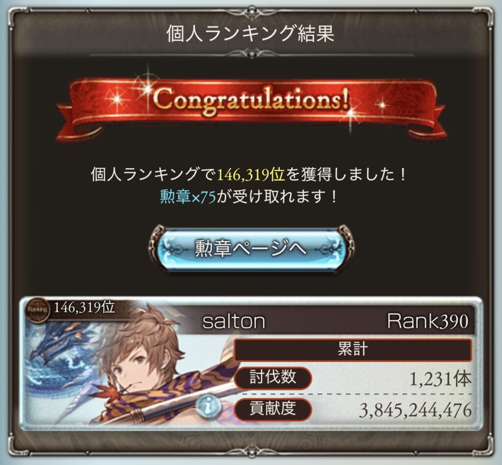 最終的な結果は、146319位で、貢献度は約38億でした。