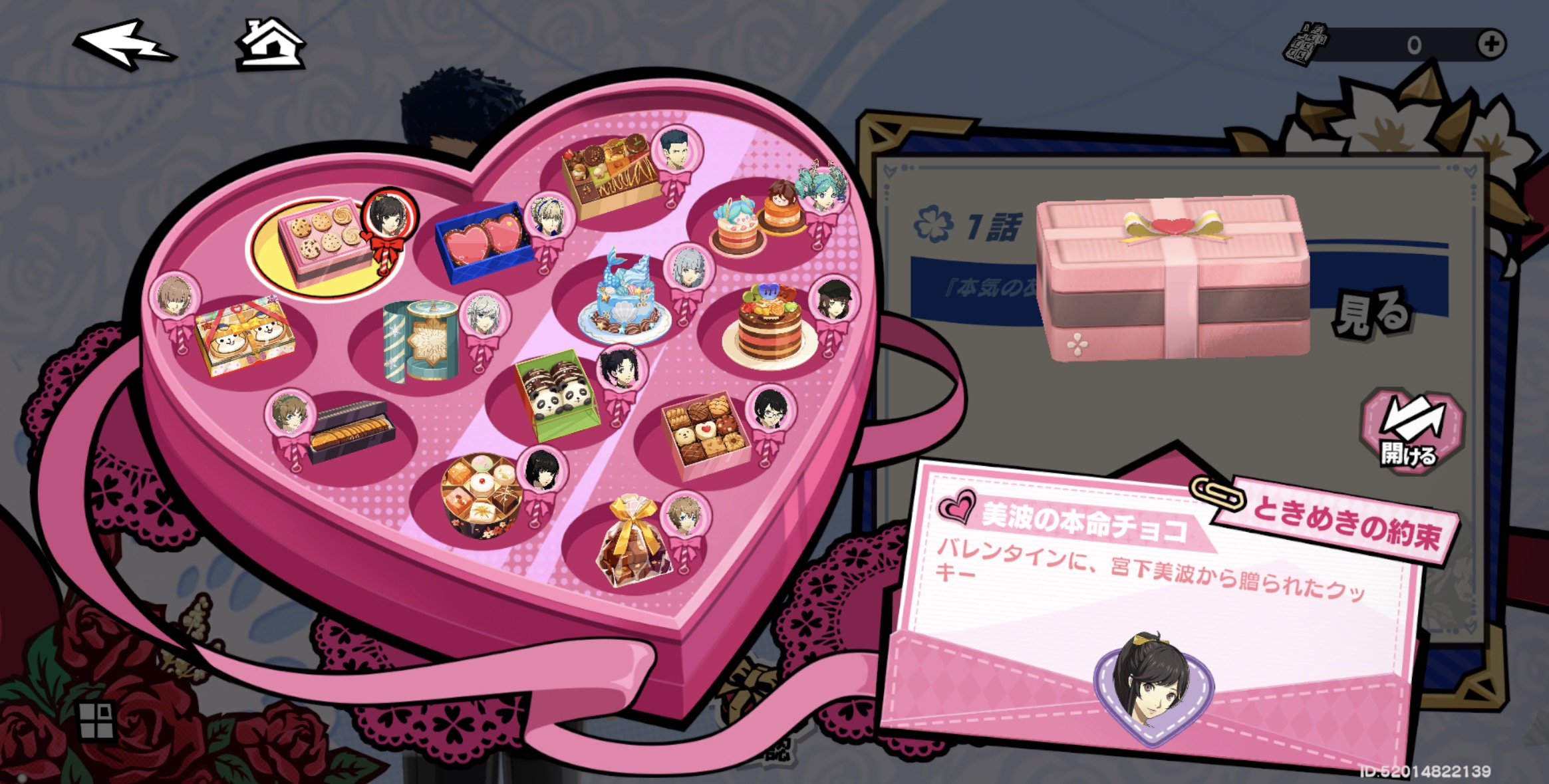 部屋における本命チョコは美波のチョコとなりました。他のキャラのチョコレートもかわいいのばかりです。美波の本命イベントのあと、いろんな人の本命イベントも見ました(部屋におけるチョコレートはもらえない)が、全員のイベントを見てみてください!!