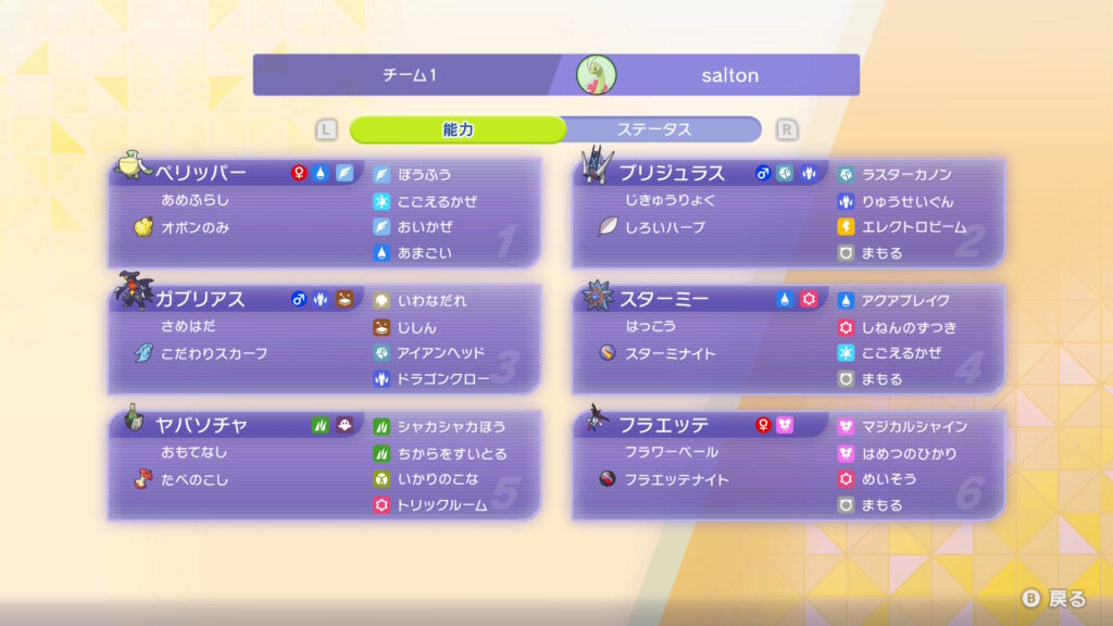 もともとカイリューが好きなので、メガカイリューで必中ぼうふうを打てる雨パでハイパーまでいきましたが、そこから勝てなくなり、カイリューの代わりにスターミーをいれたら勝てるようになりました。これからいろんなパーティを試してみたいと思います!